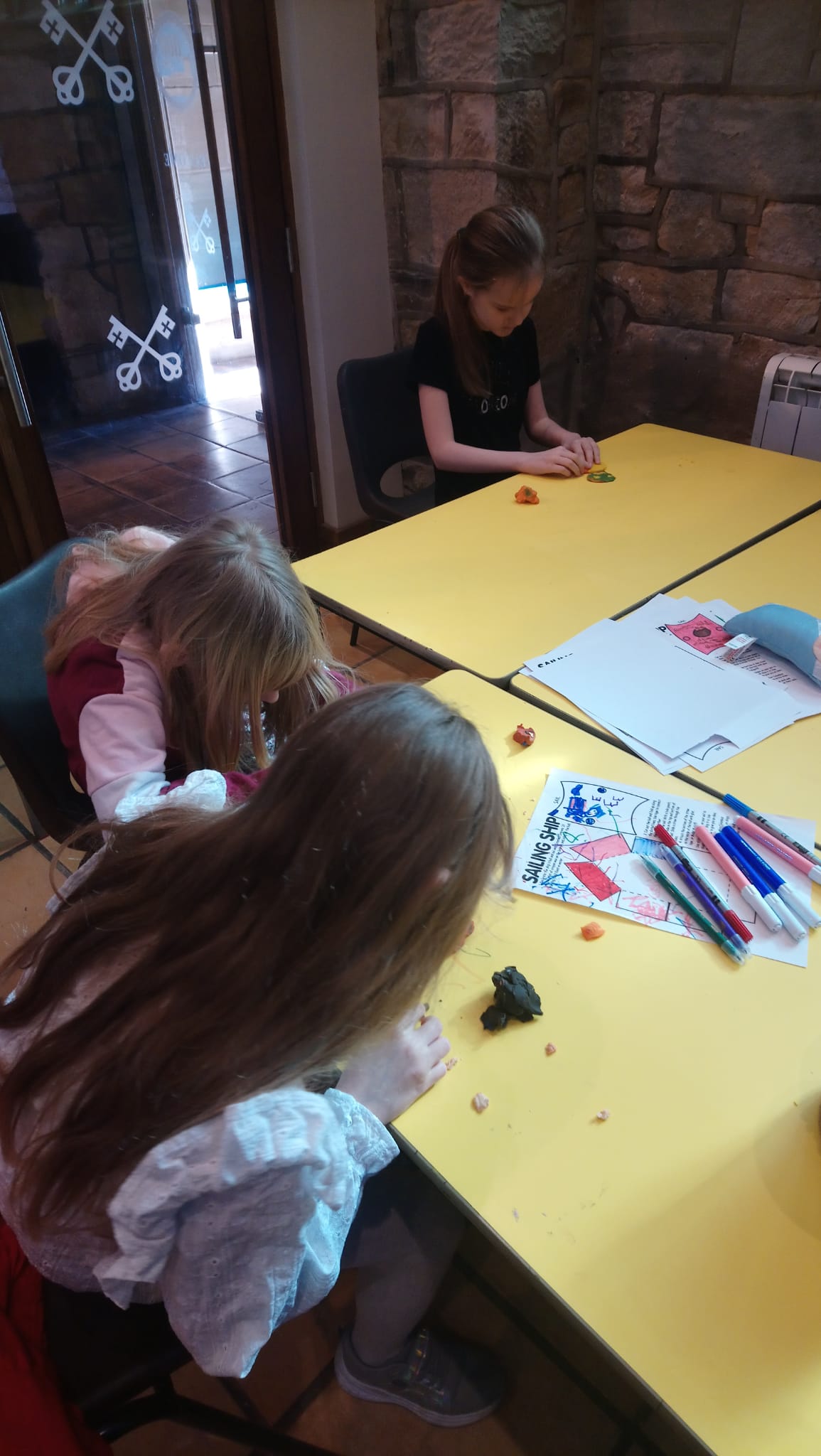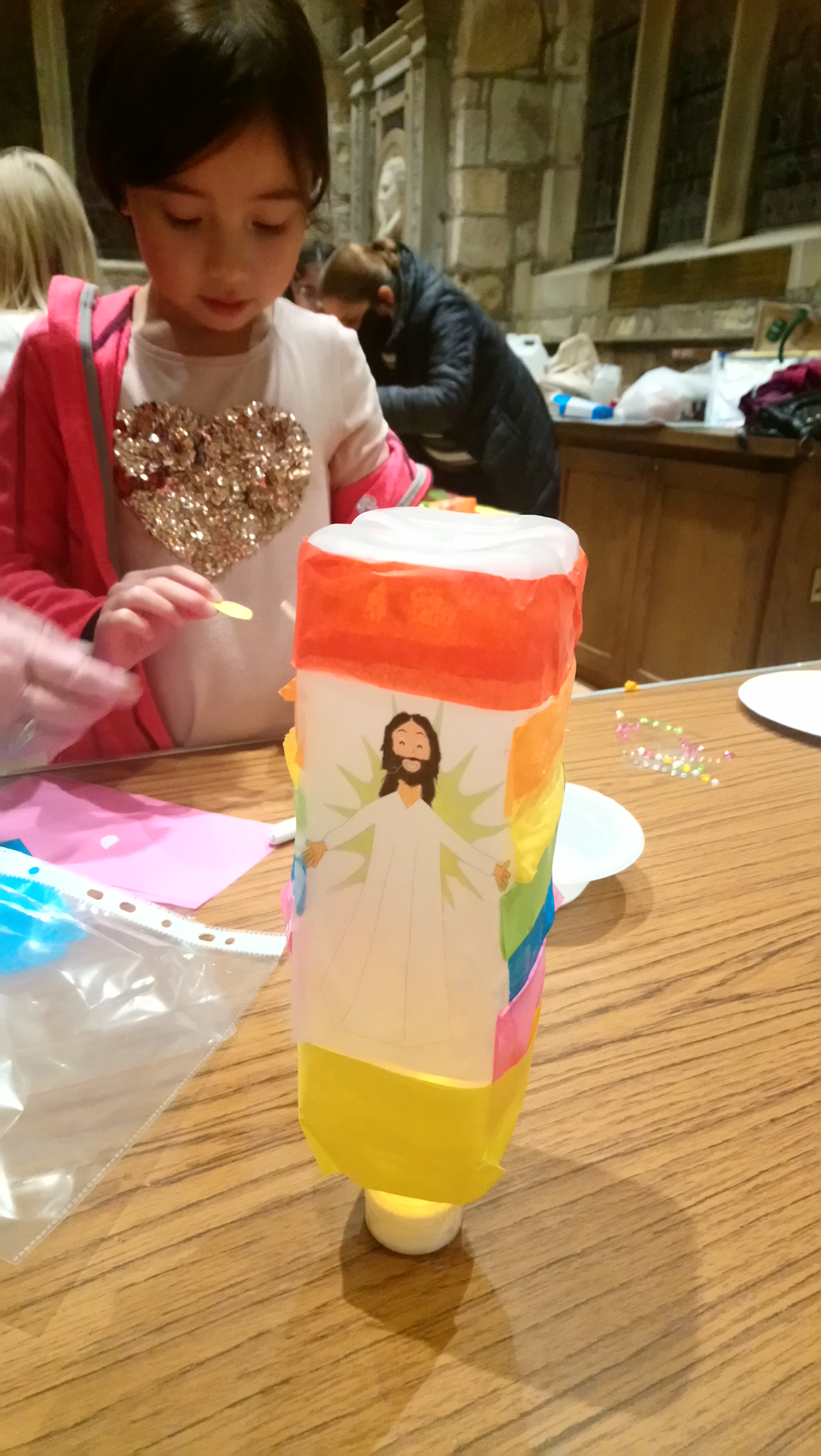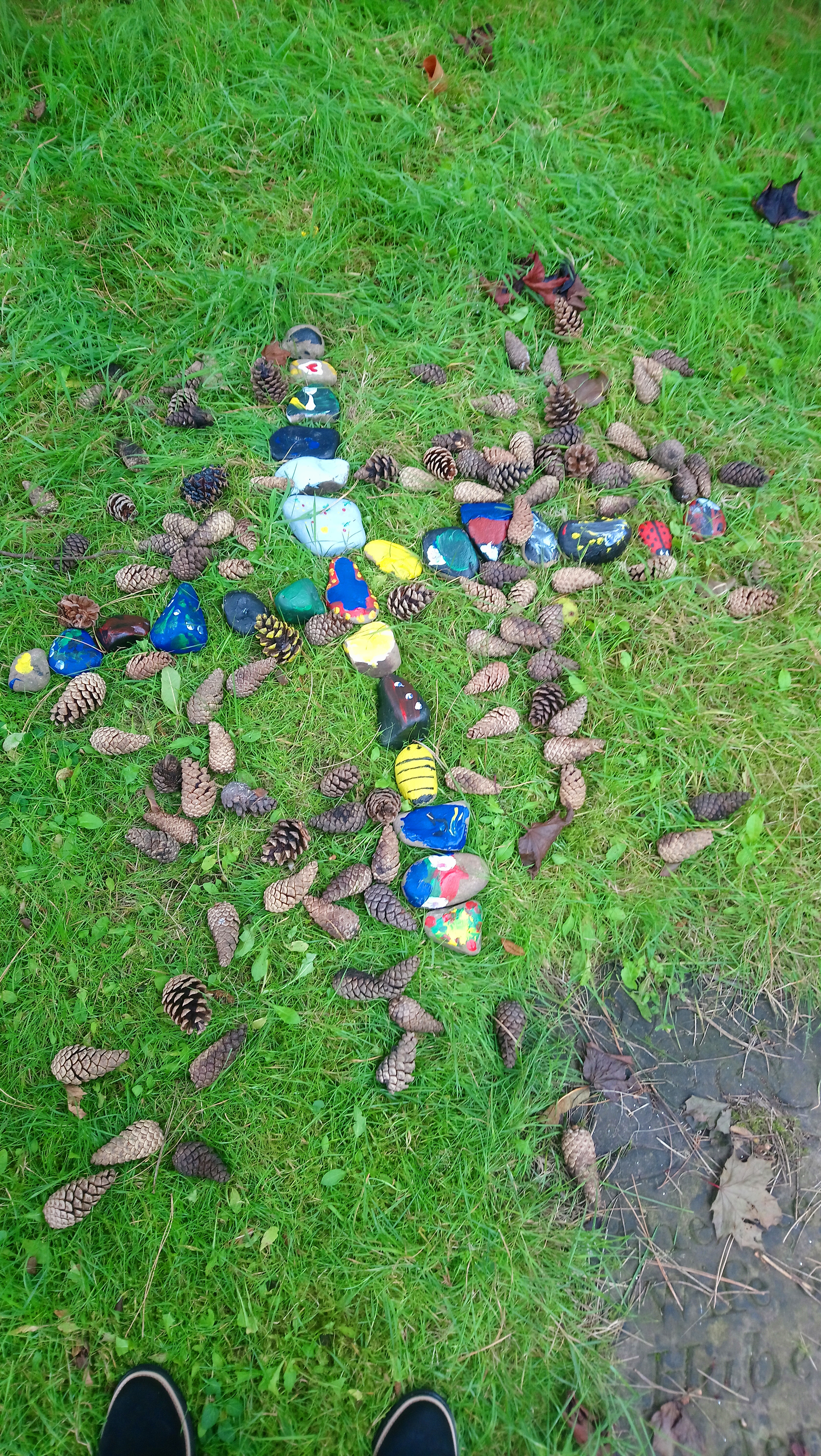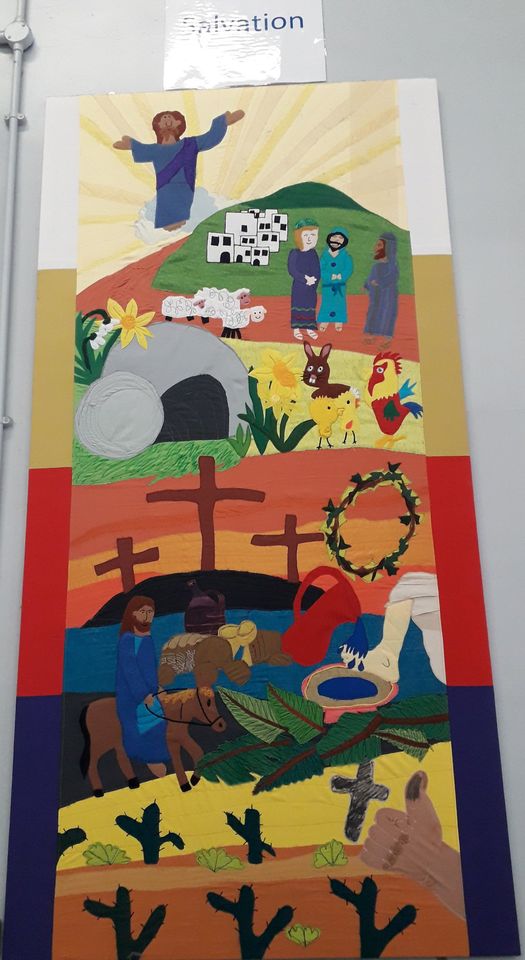 The children made artwork for Easter and a labyrinth outside