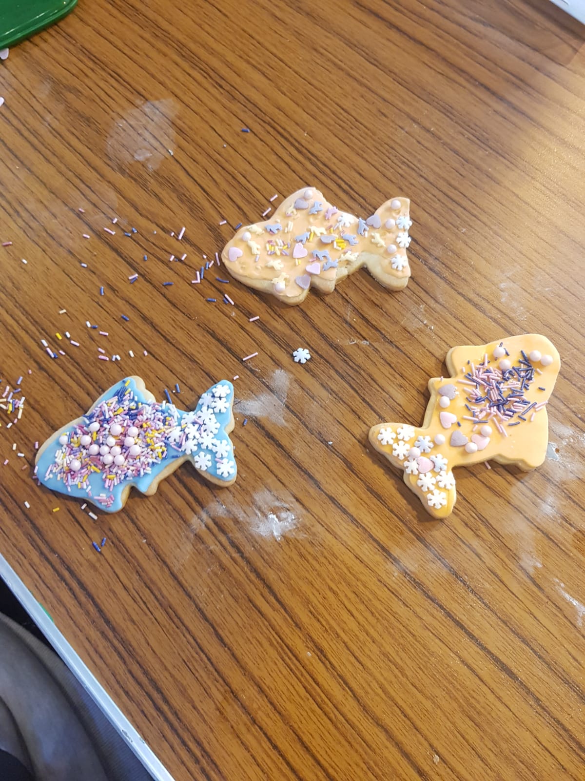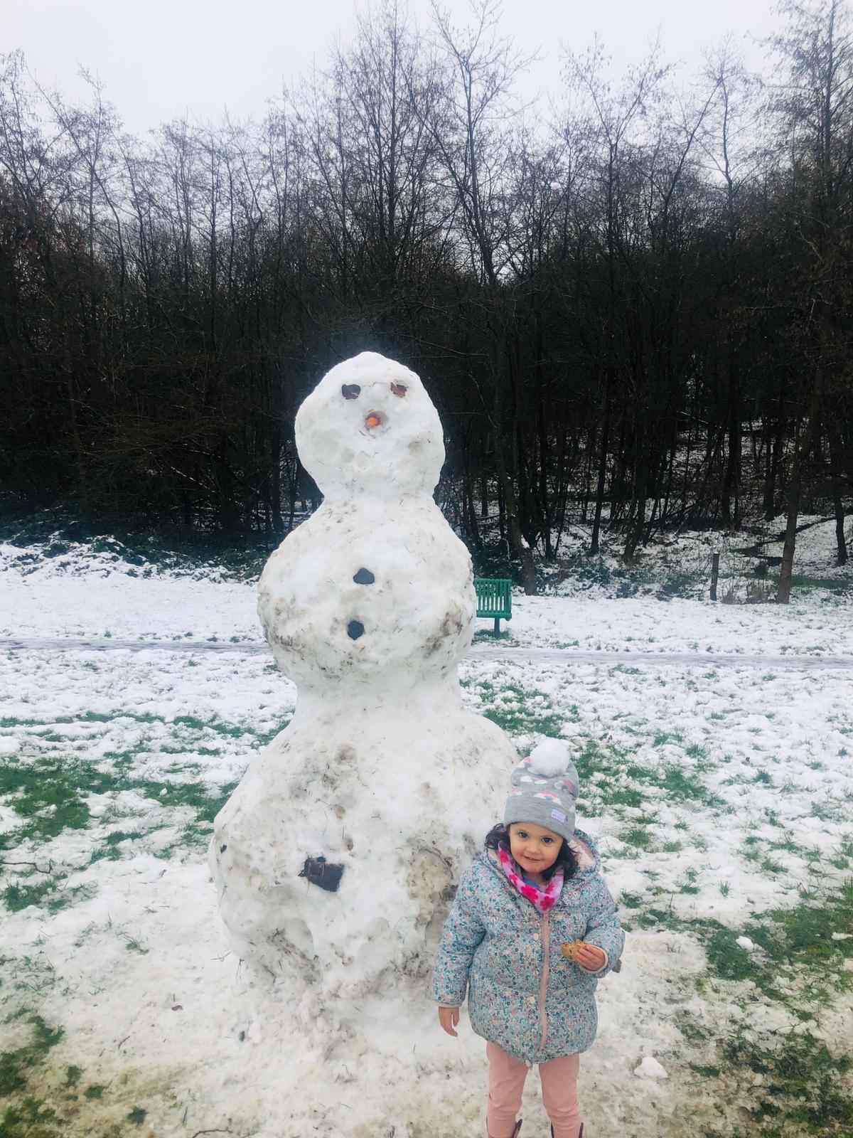 Making the nativity star; Ariya and Iris keeping warm and seeing a huge snowman; artwork of Jesus being baptised by John the Baptist and angels watching over us