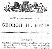 This set up the Police Circle, an area of ¾ mile radius from the merestone or marker outside the Bull Inn in St. James’s Street. The Act was not implemented and the administration of the town remained in the hands of a Town Committee elected by the Vestry Meeting set up in 1817.