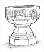 In 1617 the market was growing and a new market cross replaced the Medieval one. This cross and a building that served as a market house can be seen in this picture. It was drawn in the 1830s by the Rev. S.J. Allen