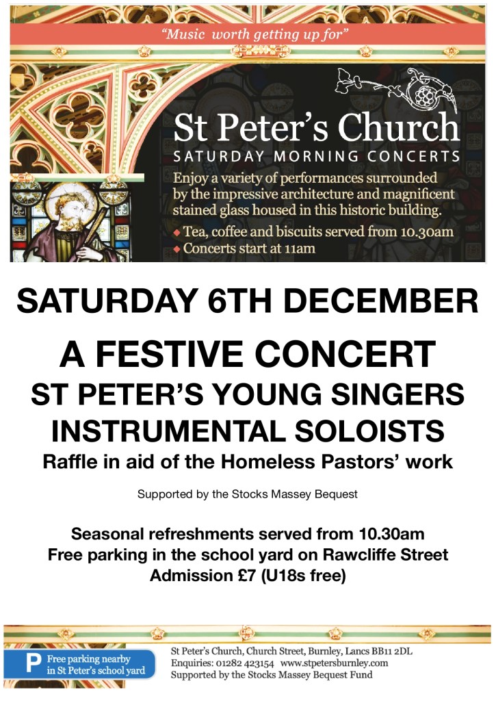Our postcode and address: St Peter’s Church, Church Street, Burnley, BB11 2DL